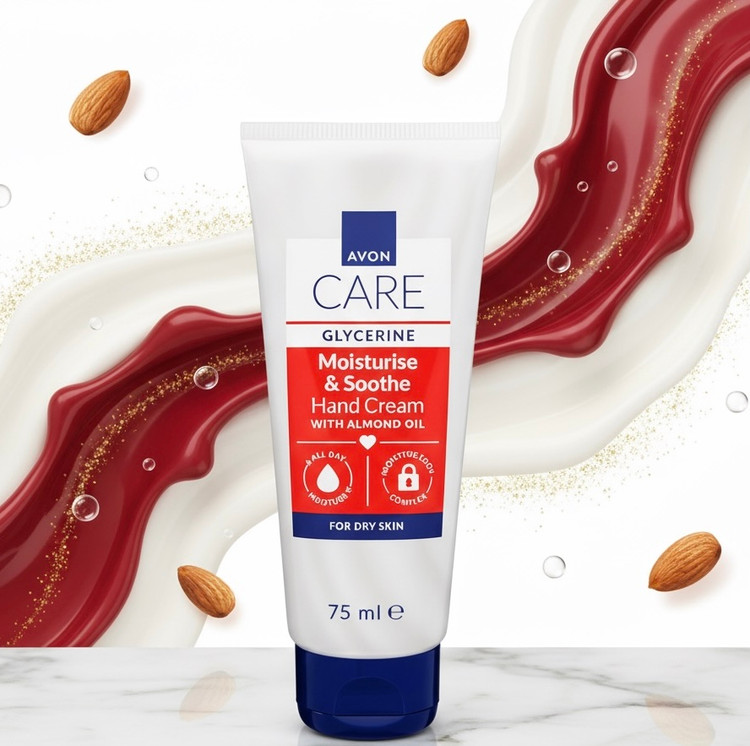 مقدار کافی از کرم دست روغن بادام و گلیسیرین Avon Care را روی پوست تمیز دستها و اطراف ناخنها بمالید و تا جذب کامل ماساژ دهید. برای بهترین نتیجه، پس از هر بار شستوشوی دست و پیش از خواب استفاده کنید.