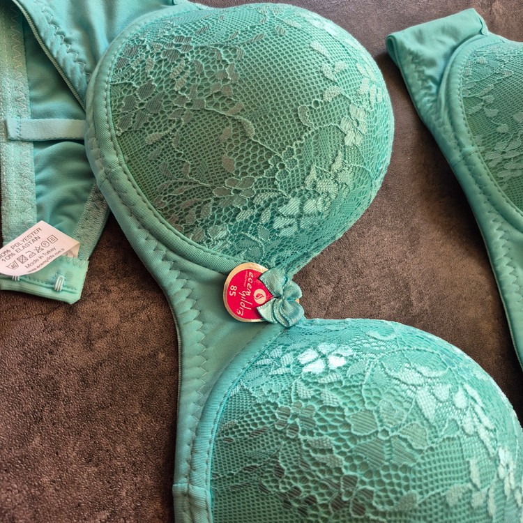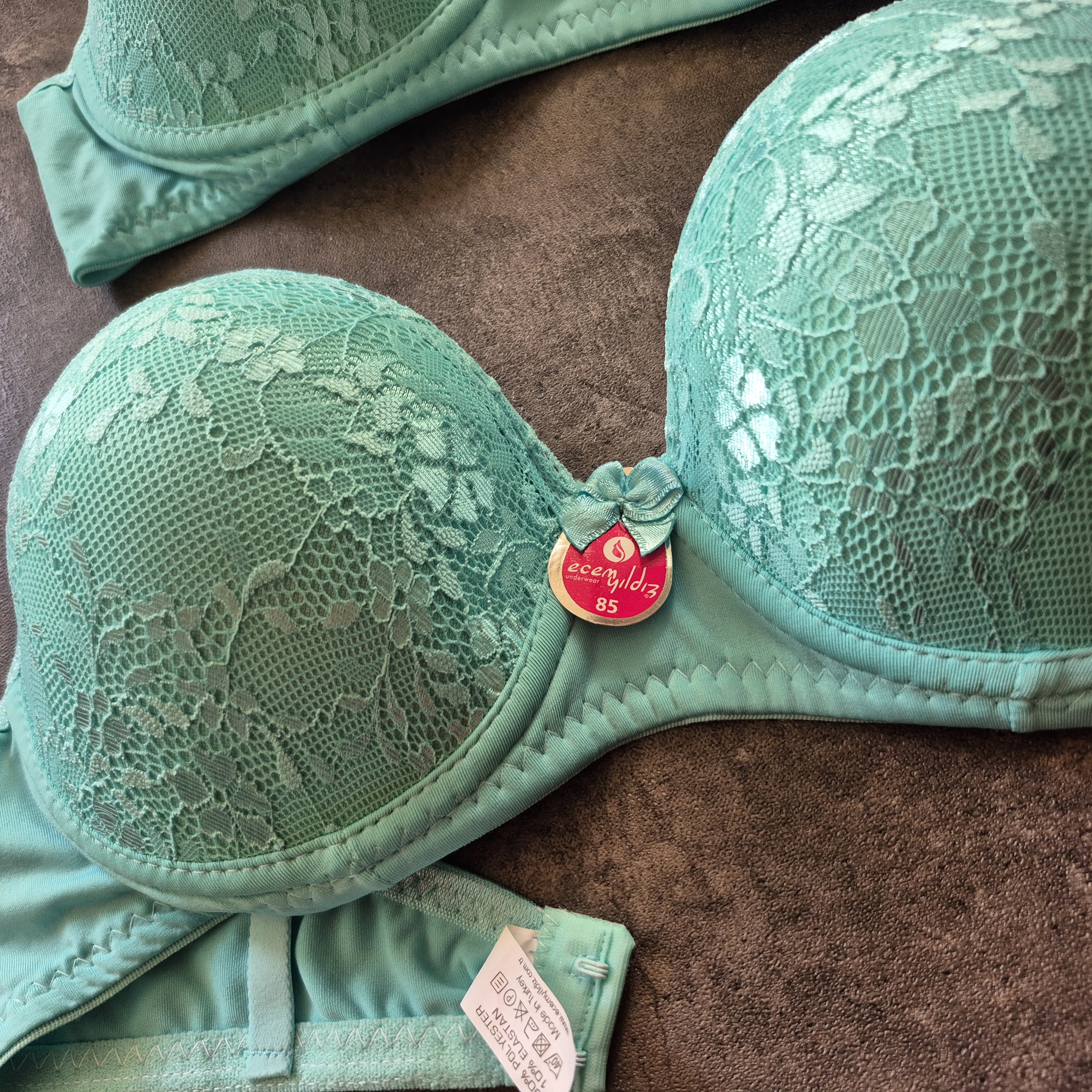 سوتین اسفنجی فنردار از برند معتبر ترک ecam yildiz با طراحی گیپور بسیار زیبا و رنگ خاص سبزآبی (فیروزهای). این محصول دارای کاپ B بوده و با فنر طراحی شده تا فرمدهی عالی و راحتی بینظیری داشته باشد.